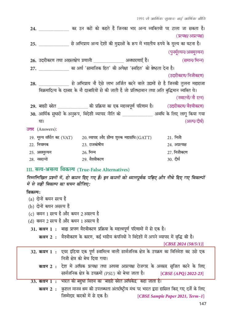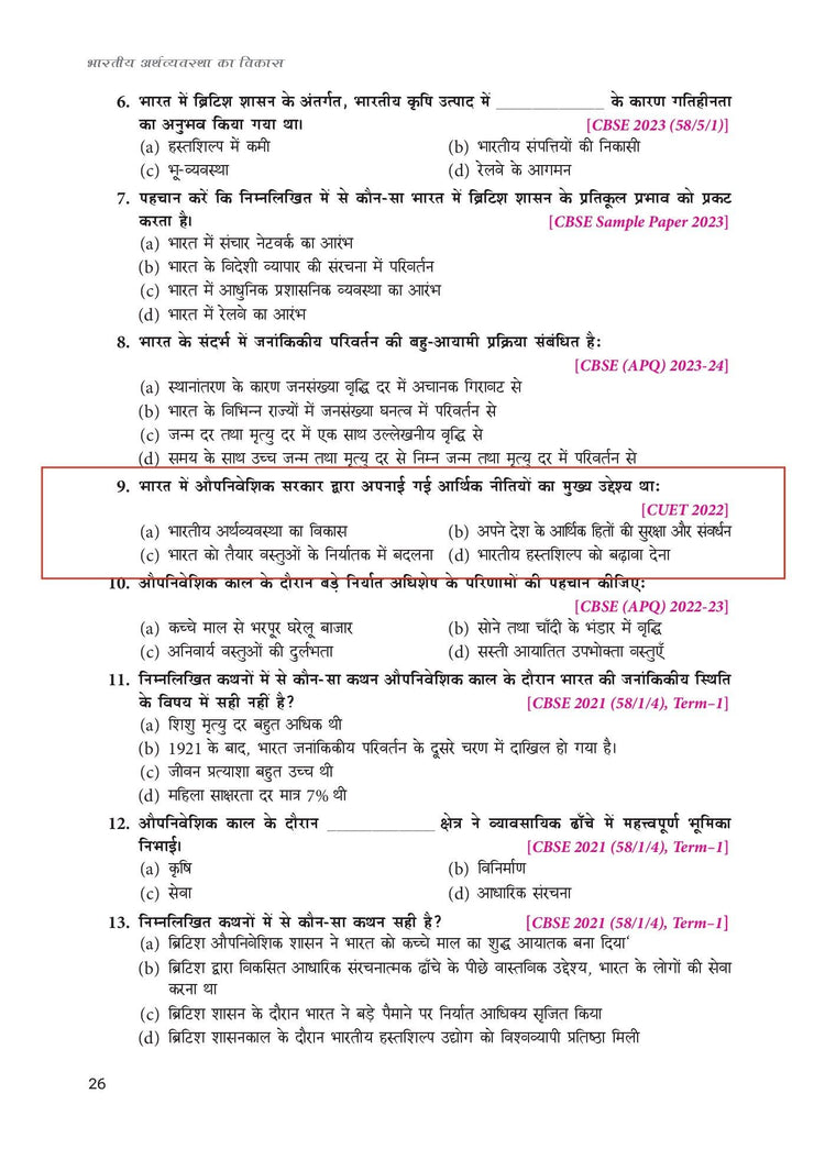 Indian Economic Development (Hindi) for Class 12 | CBSE (NCERT Solved) | Examination 2025-2026 | By TR Jain & VK Ohri |